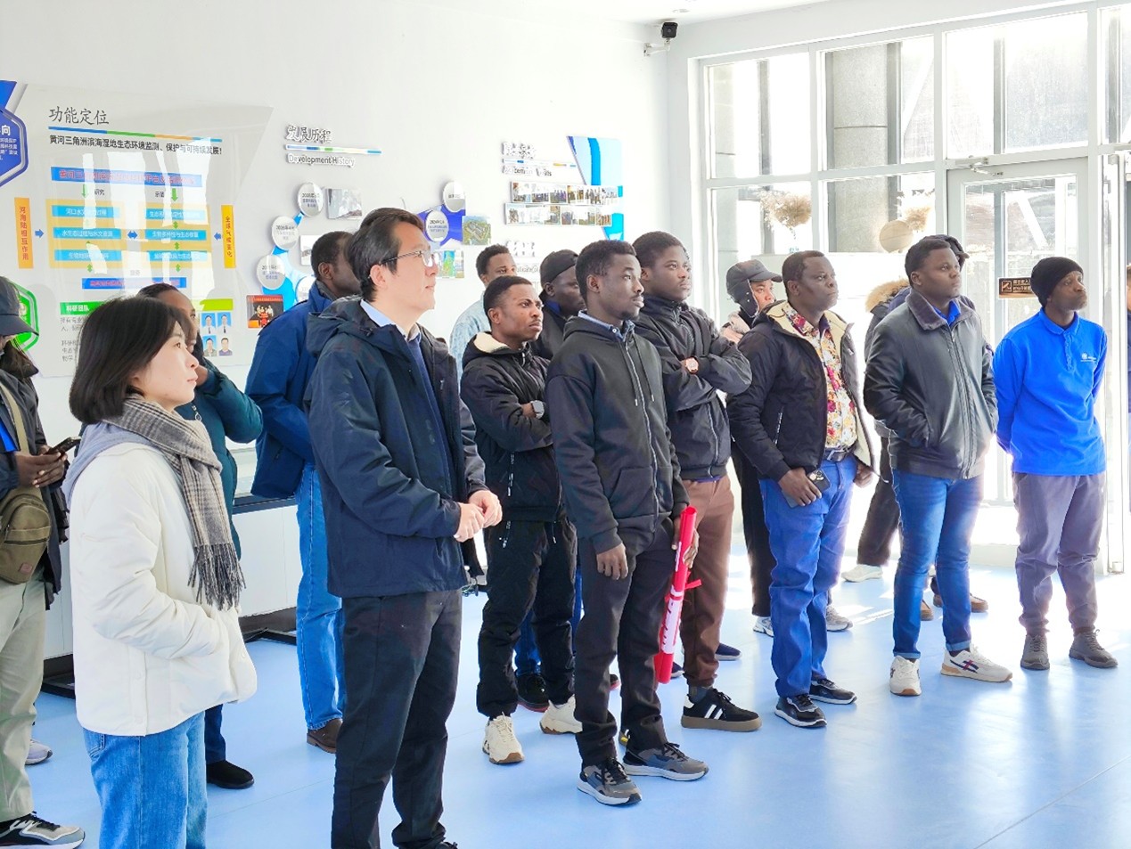 2025年11月25日,中国海洋大学海洋地球科学学院组织的非洲外国专家一行20余人参观黄河三角洲站。